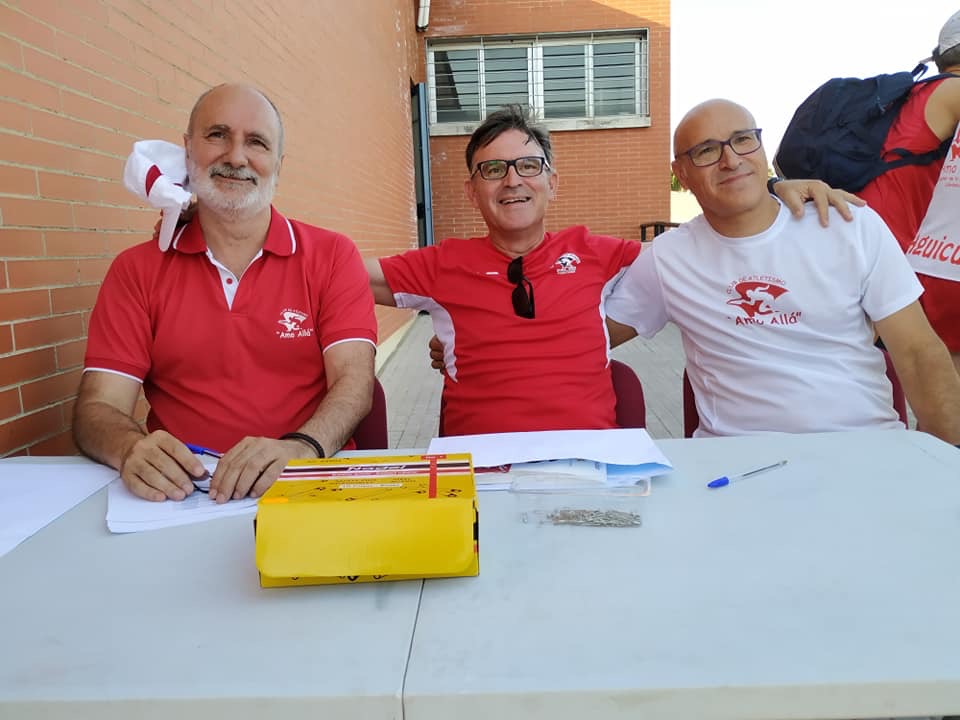 Comenzó la tarde de manera excelente, numeroso público infantil, camisetas blanquirojas AMO ALLA por todos lados, saludos entre todos, abrazos con aquellos que apenas ves solo en días como este, organización exquisita del Ayto y “la mesa”, la mesa tradicional de entrega de dorsales, que majestuosamente cada año, uno de detrás de otro y van muchos, hace entrega amablemente de los dorsales a los participantes, siempre a manos de gente tan amable y participativa como son Paco Toscano, Andrés Córdoba y Diego Igeño, leyendas de este Club.